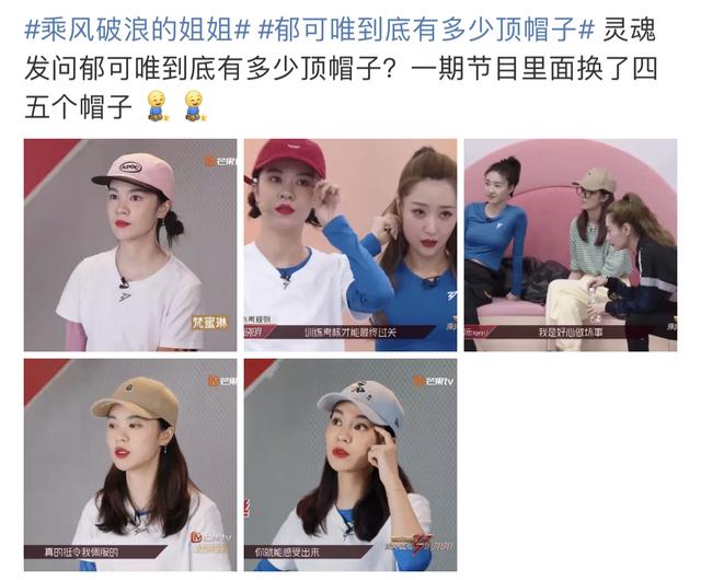 不仅如此,还有网友发现,郁可唯在一期节目里换了四五顶帽子。从小红帽到小蓝帽,再到小粉帽、小棕帽……试问郁可唯到底有多少顶帽子?