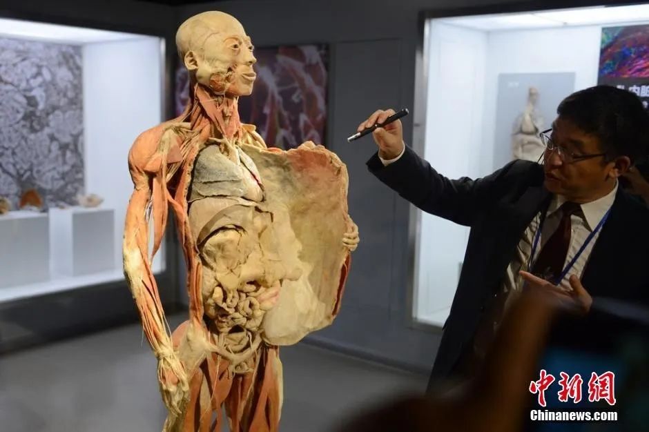 而人体塑化标本,不但摆出各种活人的体态,还像活人一样“睁着”眼睛。这么设计的目的是为了让观众忽略死亡,更专注于科学知识。隋鸿锦介绍说:“接收到的尸体各式各样,在制作过程中,我们会尽可能让标本美一些、动感强一些。如果生前身材不那么完美,比方说年纪大了,我们会利用技术进行调整让标本看起来更年轻一些。美本身就是一种尊重。”
