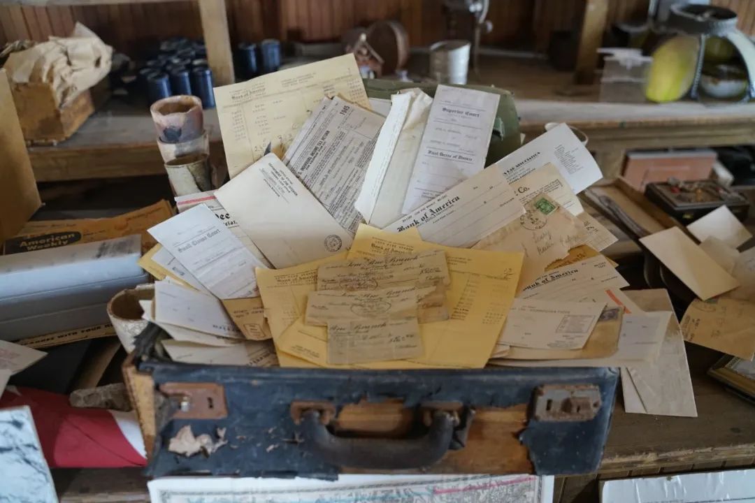 同样,Underwood在塞罗戈多远离尘嚣的原因也很明确。独居6周后,Underwood在矿工从前光顾的老杂货店后面发现了一个破败不堪的蓝色公文包,里面装满了另一个人短暂的一生。公文包的主人是个矿工,大约100年前曾经住在这里,那时正是20世纪早期锌矿生产第二次繁荣的鼎盛时期。“有1910年代的银行对账单、取得的采矿权、和其他矿工之间的诉讼,援引‘极端残酷’的离婚文件、未兑现支票、情书、泄愤信等等,”Underwood说。“这是个保存完好的时间胶囊,记录了矿工的一生。”