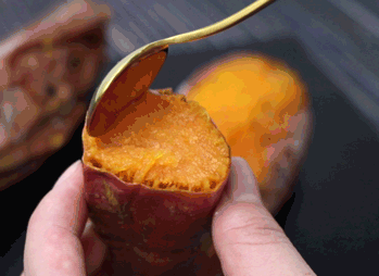 剥开烤的焦脆的外皮,拿上一个勺子挖着这香甜软糯流着蜜的红薯吃,一天的疲惫瞬间被这口美味而代替。