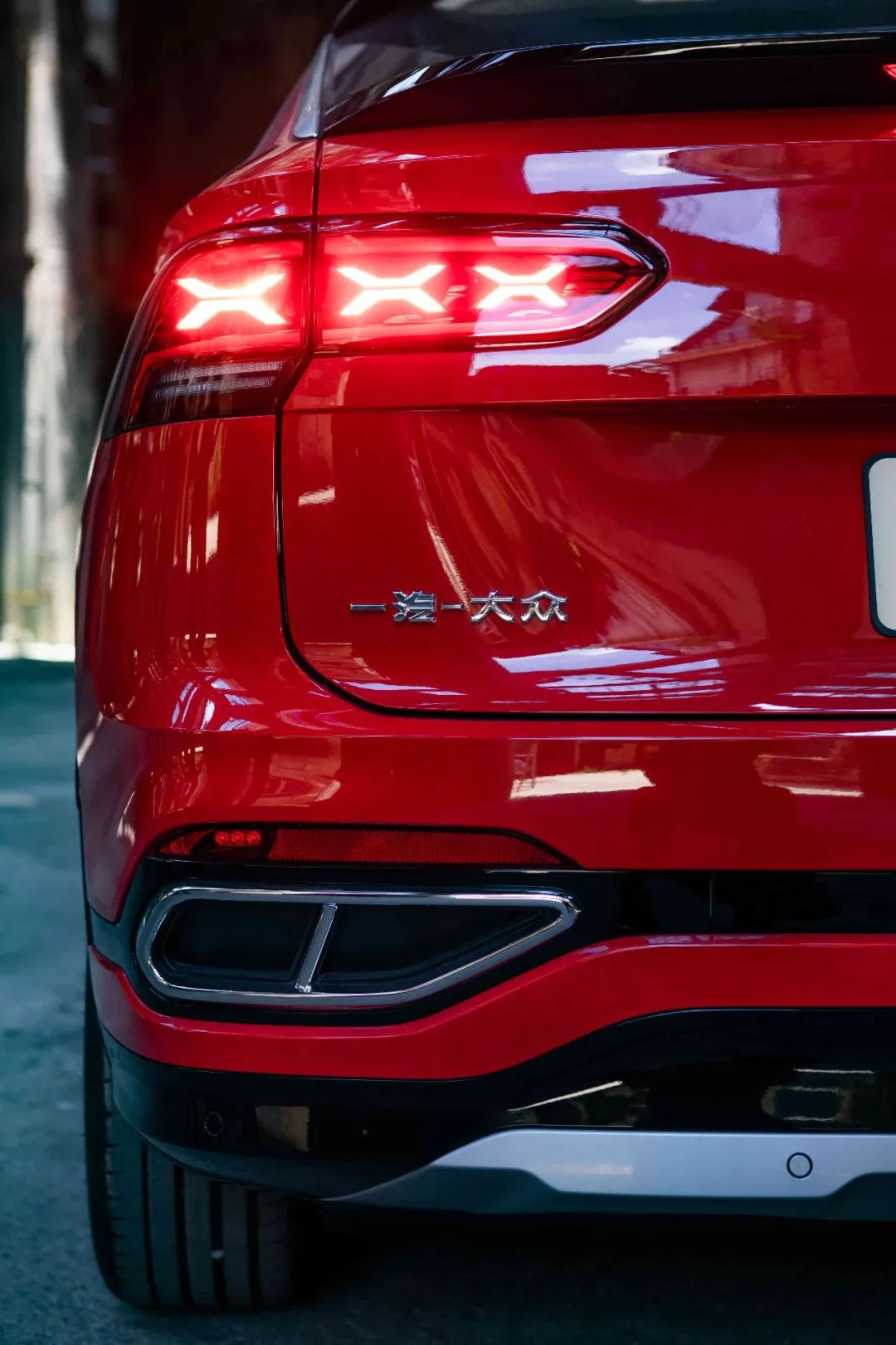 探岳X的车尾处为三重“X造型”LED尾灯,拥有独特的流水转向功能,在转向、刹车和倒车三种状态下可实现不同的动态效果切换。