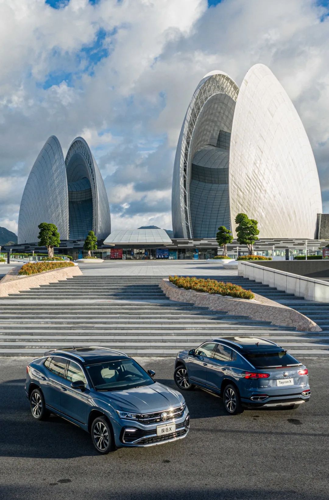 探岳X的尾部造型同样勾魂摄魄,矗立于流光溢彩的珠海大剧院前自成一道亮丽的风景线。
