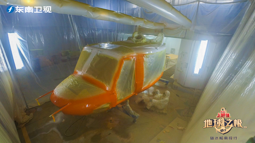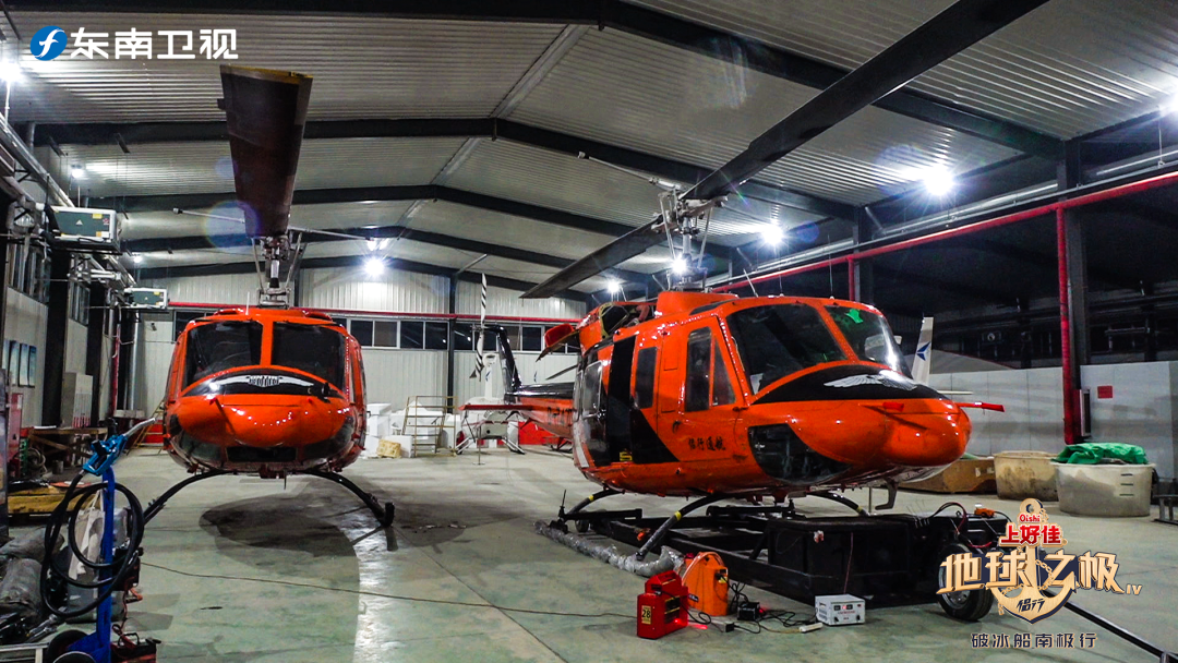 这架颜色瞩目的贝尔-212直升机可不是摆设,它是此次南极之行中的“天空卫士”。