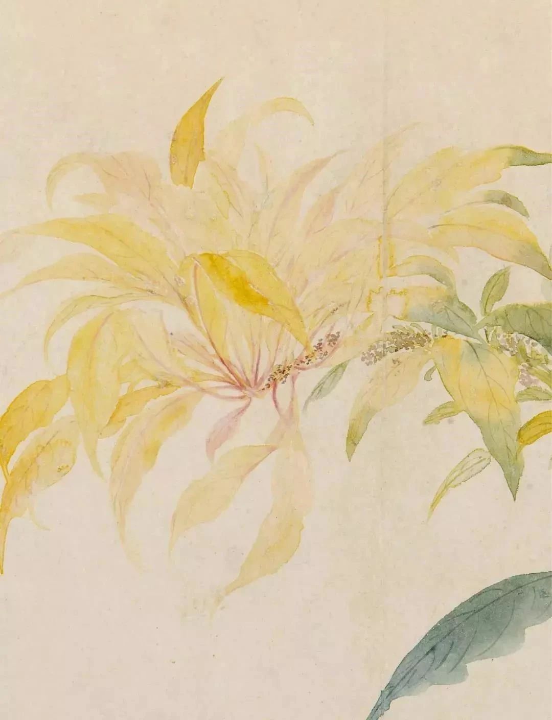 此页精彩处在雁来红叶子的画法和用色。恽寿平真是把“没骨画法”运用得出神入化!