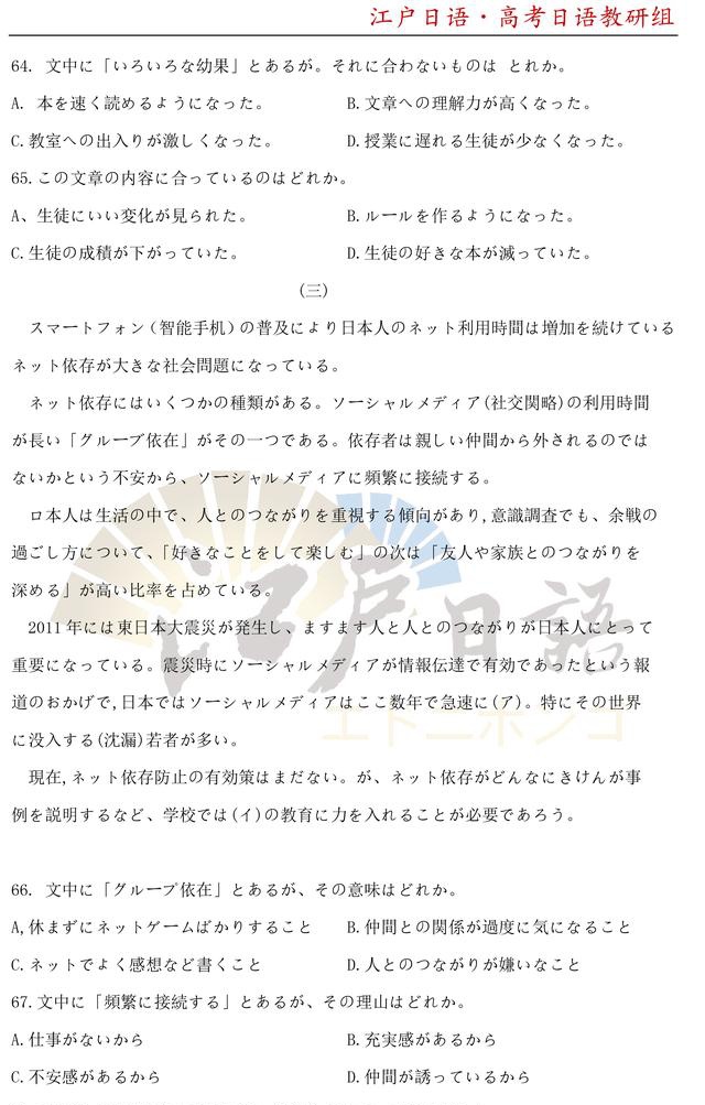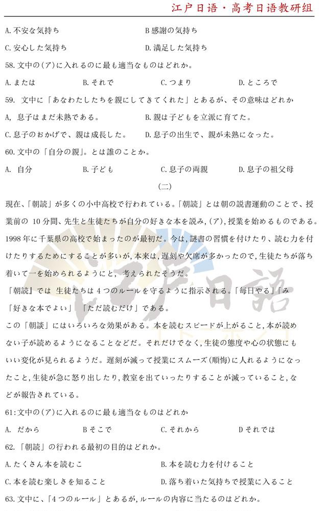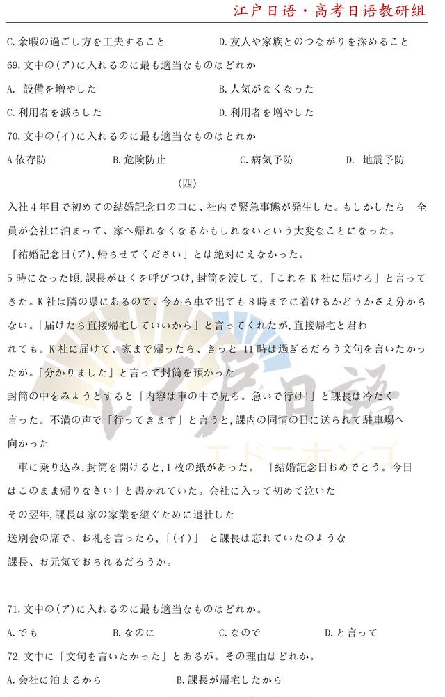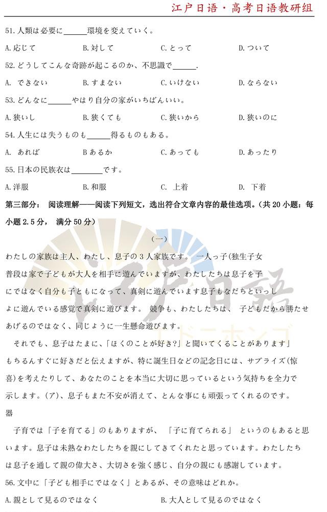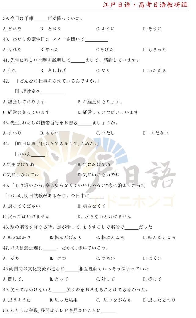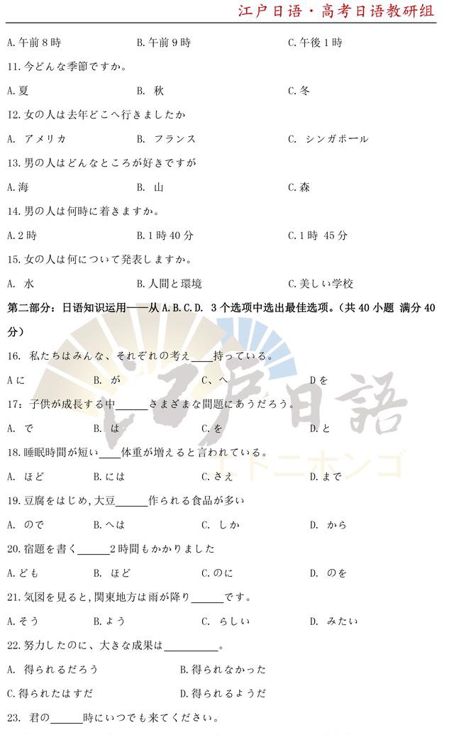 之前,重庆日语培训机构江户日语已经发布了2010年~2014年的高考日语真题及答案,小伙伴们可以文章末尾回复获取详情!今天我们将发【2020年高考日语真题及答案】。