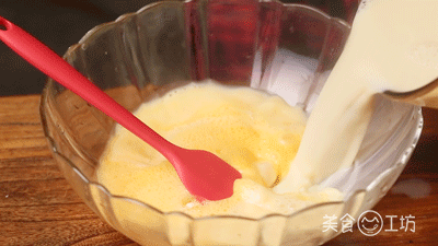 2. 将鸡蛋打散,倒入不烫手的熟豆浆,搅拌均匀。