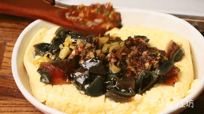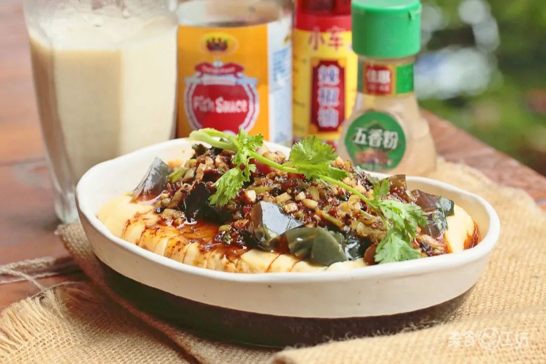 用鸡蛋与豆浆做成的豆腐,非常Q弹紧致,里面没有气孔,也不容易散,像布丁一样。用来煲汤、煎着吃也可以,直接像美食君这样拌着吃也行,反正已经全部蒸熟了。