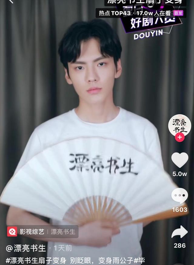 比如最近小编刷抖音时,看到了“漂亮书生扇子变身”的视频。