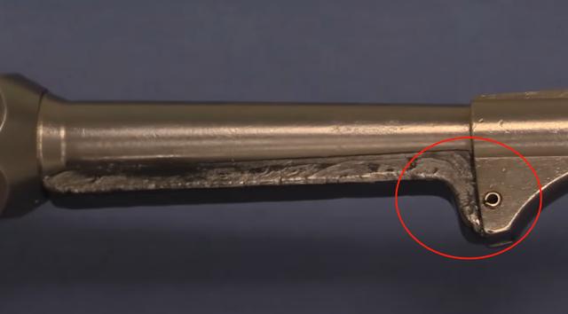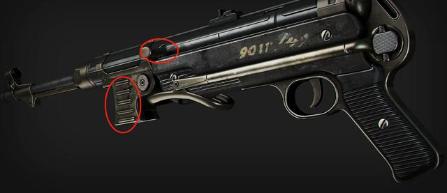 在MP38和MP40的枪口处都有一个类似于挂钩的东西,这个东西源于其最早配发的部队的缘故。最早德军的MP38配发于装甲兵,会在车内进行射击。而这个钩子的作用就是卡在车身上,可以更大程度避免枪口因为颠簸而意外缩回车内。