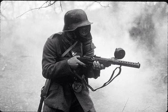 最早呢,是一战那会儿,那会儿人们玩着腻腻歪歪的堑壕战,蹲在战壕里对着拉大栓。而这样的战争往往陷入僵局,而且,你总得冲到对方阵地上和对方短兵相接。而问题也随着来了,距离近了,你是不是需要更充足的火力呢?是。但是你手里的栓动步枪不好用啊,射速慢啊,这会儿你就需要一个短小、火力猛、适合近战的武器。