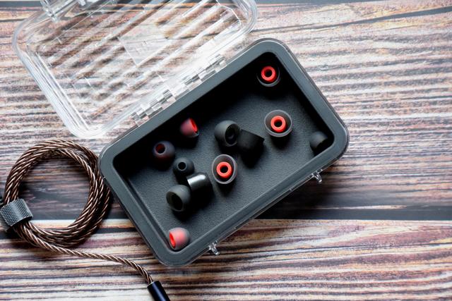 飞傲从来不会在产品配件上有所吝啬,这次的FD1耳机也同样如此。3对均衡耳套、3对低频耳套、1对记忆海绵耳套,丰富的耳套搭配适合于不同用户的需求。配套的HB1透明收纳盒具备防水抗压性能,盒面的不规则镜面高光效果大气时尚,真的无愧于烧友们冠以配件大厂的称号。
