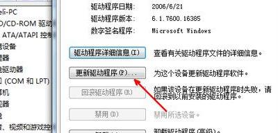 6、现在,把你的ps2接口的鼠标拔下来,重新插上你的USB鼠标,插上之后,系统一般会开始自动安装驱动。如果没有安装,就再打开刚才的鼠标属性的页面,点击更新驱动程序按钮,更新一下驱动。一般如果是驱动原因的话,通过此方法便可以解决。