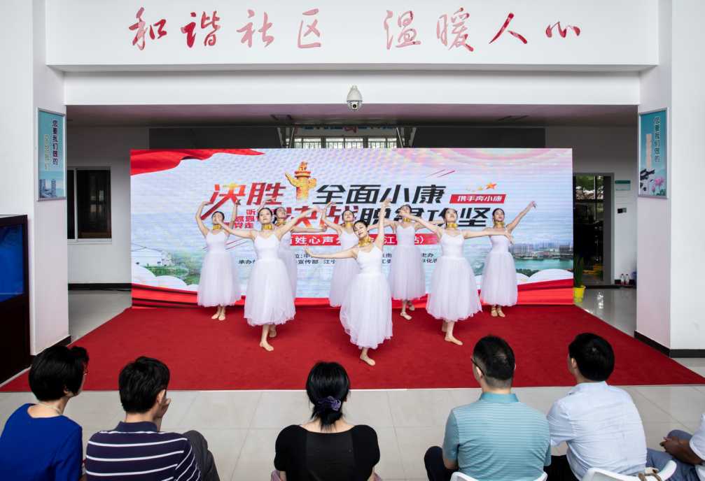 活动中,个人分享、互动提问、文艺表演形式多样,全方位展示江宁区全面建设小康的伟大成就和伟大实践,触动观众心灵,传递正能量。暖场视频《来江宁织造幸福》,展示着江宁全面建设小康成就,吸引着更多人来江宁织造幸福。开场歌舞《美丽江宁我的家》,以舞蹈的形式,展现着江宁美丽家园。在互动“猜猜看”环节,“谜底”小小金龙鱼从淳化鑫淼龙锦园出发,“游”到了陕西洛南,不仅架起了宁陕两地结对帮扶的桥梁,更成为洛南群众小康路上的“致富鱼”。