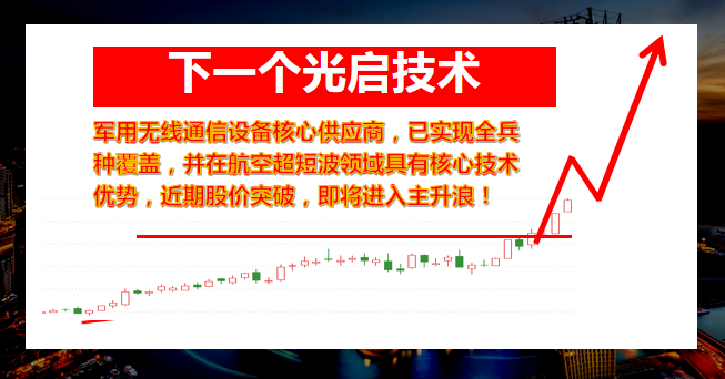 我们根据基本面筛选,挖掘了一只基本和背景与光启技术非常类似的标的,图形上看,正在进行突破,有极大可能会去复制成为【下一个光启技术】值得我们重点关注。投资者朋友们可以加微信:apple88ee 回复【潜力牛股】 免费领取。