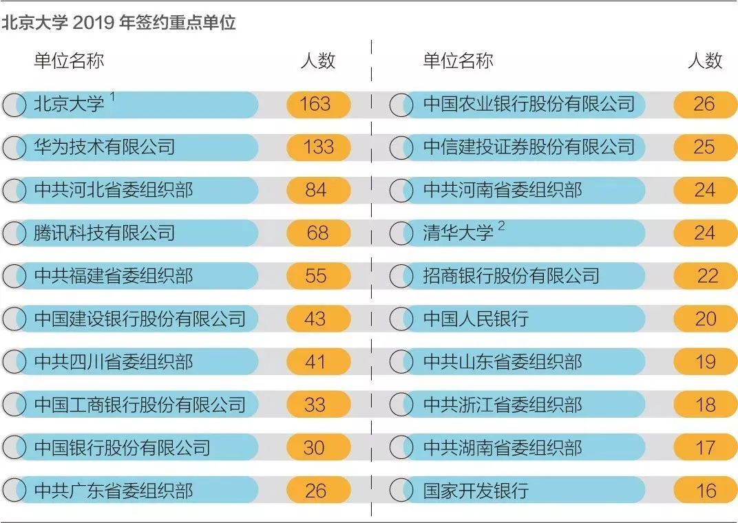在北大,华为是毕业生去得最多的企业,共有133人,在就业单位榜单上仅次于北京大学自身。