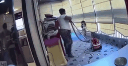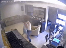 这是一位被监控记录下来的父亲,在爆炸发生的一瞬间,他第一时间把孩子安置在了桌子底下↓