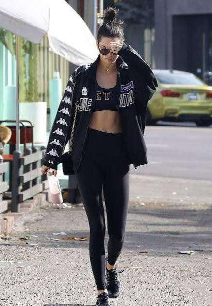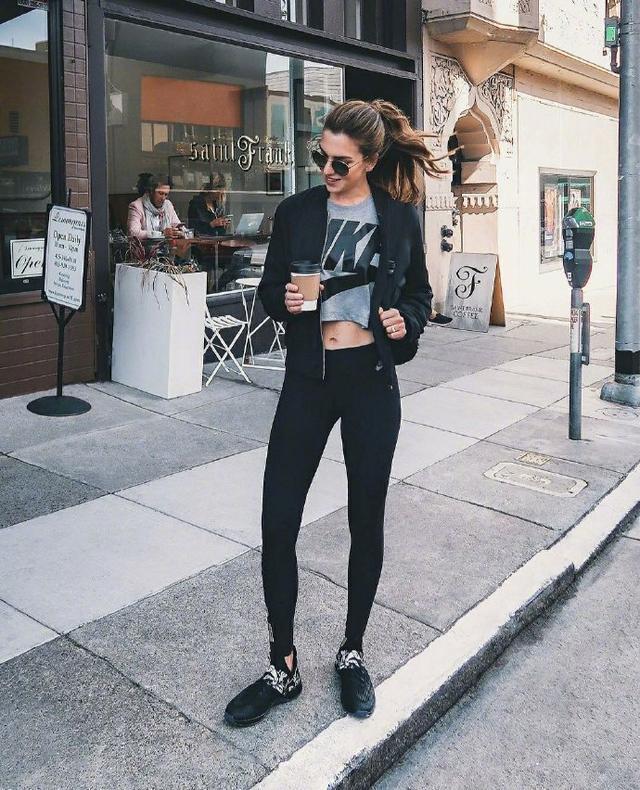 紧身衣和紧身裤都是比较考验身材的,可以在最大幅度打造自己的娇俏身形出来。结合上衣的露腰设计,这种性感的味道也会来得更加的强烈,在衣服上面修饰白色的印花图案,打造出整体穿搭的吸睛点。搭配黑色的运动鞋穿起来,显得合拍度满满,搭配齐耳的短发和帅气的墨镜,轻松穿出活力无限。