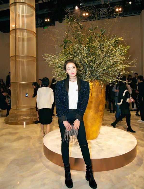黑色的休闲短靴,是采用系带的设计,穿起来显得舒适自在,搭配紧身设计的小黑裤穿起来,显得时尚简约。上身内搭白色小衫,外面一件蓝色亮片小外套,打造出时髦的视觉既视感出来。一个精致唯美的流苏包包加入,也为整套穿搭带来不少的时髦韵味呈现。