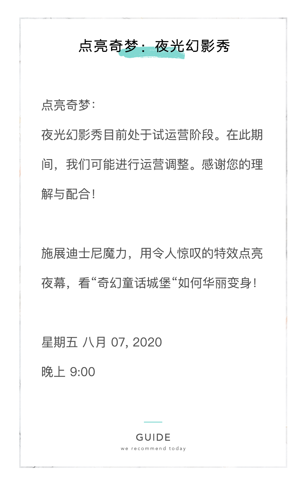 上海迪士尼度假区通过官方微信宣布:「点亮奇梦:夜光幻影秀」以试运营形式正式回归!