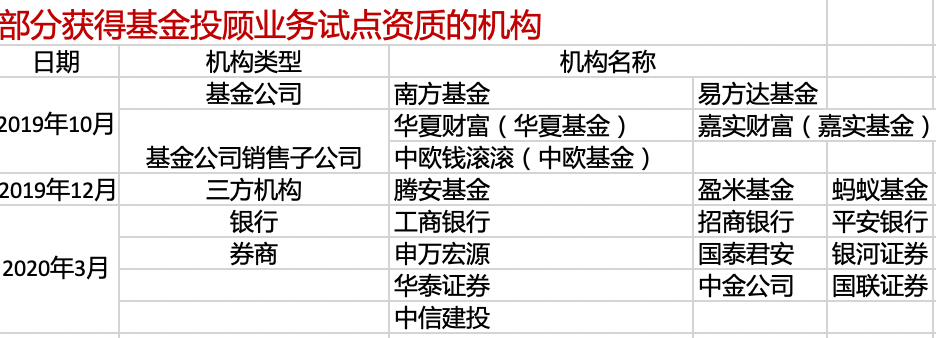 基金投顾是为了解决公募基金行业基金赚钱基民不赚钱的问题。之前基金行业由渠道主导,追涨杀跌现象突出。不少投资者把基金当成股票炒,导致即便基金净值曲线走得很漂亮,基民还是赚不到钱。自2019年10月首批机构获批基金投顾试点资质以来,目前已有十多家机构获批基金投顾资质,包括基金公司、基金销售子公司、券商、银行等。