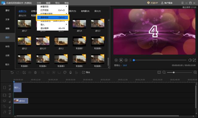 点击页面右边窗口中的【播放】图标,搭配虚化模板一起看看这份视频的整体效果。效果还ok的话,点击页面【文件】-【保存项目】按键,就可以把这份视频作品保存到电脑上。除了给视频添加虚化效果,这款软件还有更多视频素材等待小伙伴们前来发掘。