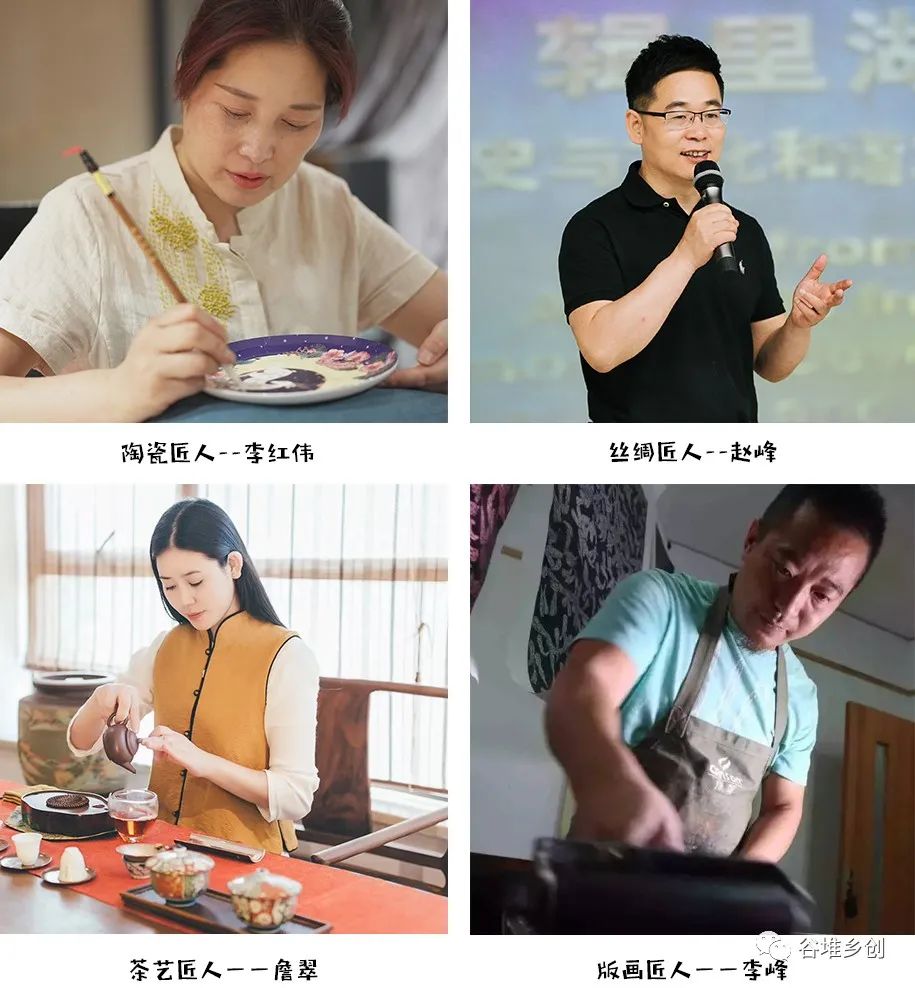 由匠人团队的各位老师为大家介绍各种手工艺,有:陶瓷老师李红伟,丝绸老师赵峰,茶艺老师詹翠,版画老师李峰等。