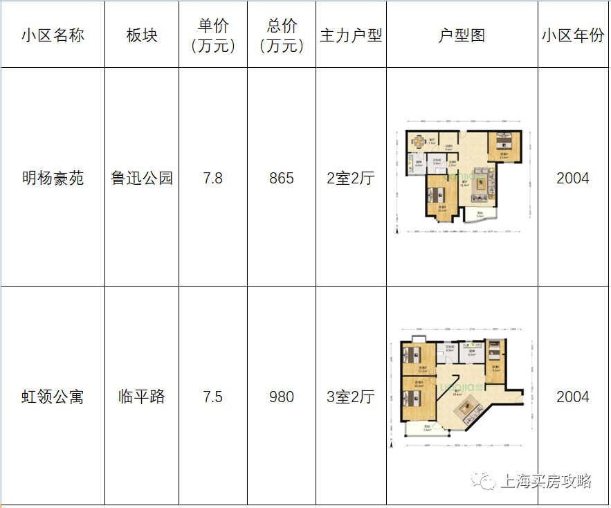 两房总价600-800万,三房总价900-1200万。虹口区整体房价比较扁平,品质普通的板式住宅单价和总价都差不多,各板块都有一些。