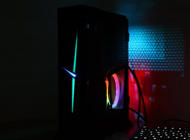 尽管是品牌机,但海皇戟A在玩灯方面并不落伍,时下流行的RGB玩的很6,而且还原生支持MSI自家的Mystic Light灯光控制软件。在Mystic Light中,有多种灯效模式可选,玩家可以随意自定义自己喜欢的色彩,下面先看紫色。红色和紫色的搭配。蓝色和绿色的搭配。