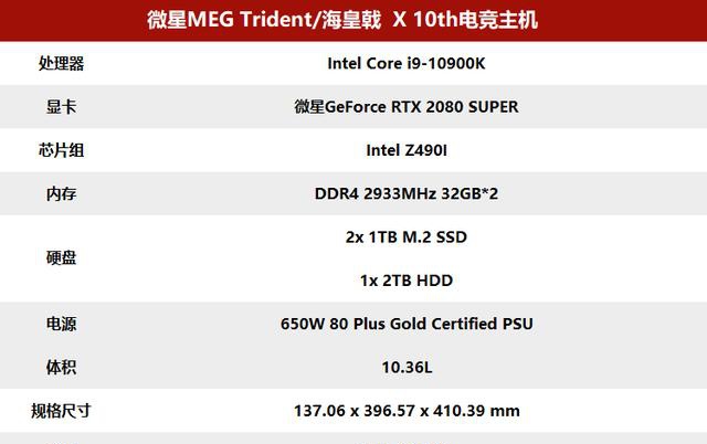 这台微星海皇戟X电竞主机内置的处理器是目前最强的游戏处理器——Intel Core i9-10900K。这款处理器的默认TDP为125W,但是微星海皇戟X将其解锁到150W,以让其发挥更强的性能。测试结果也显示了微星海皇戟X中这颗i9-10900K性能的强大,具有20个线程的i9-10900K不仅多核性能恐怖,单核性能更是目前桌面平台的顶峰,对于一台电竞主机来说,微星海皇戟X中搭载的i9-10900K不仅能够胜任,而且可以说无出其右了。