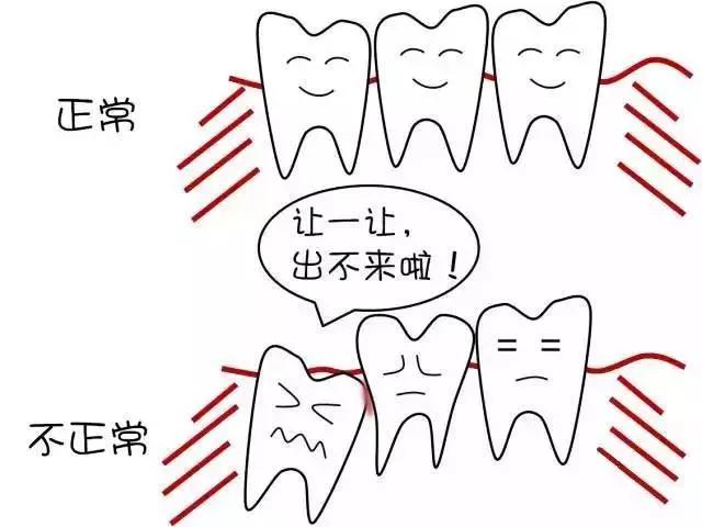 3.空间不足:智齿在人类的演化史上,是属于消逝状态。因此牙弓也越来越小,空间不足的情况是很常见的。以萌发的时候最能感觉到肿胀、疼痛感。很多人就是因为不能忍受这种疼痛感,而决定拔掉智齿。