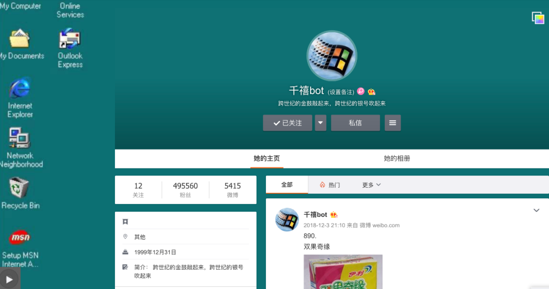 2018年10月,千禧bot发了第一条微博: