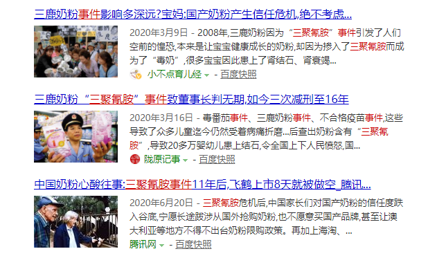 2008年9月,受三聚氰胺“毒奶粉”事件影响,涉及多家奶业巨头,民众对整个奶制品行业的信任降至最低点,行业迎来大洗牌,进口洋奶粉趁机吃下中国85%的市场。
