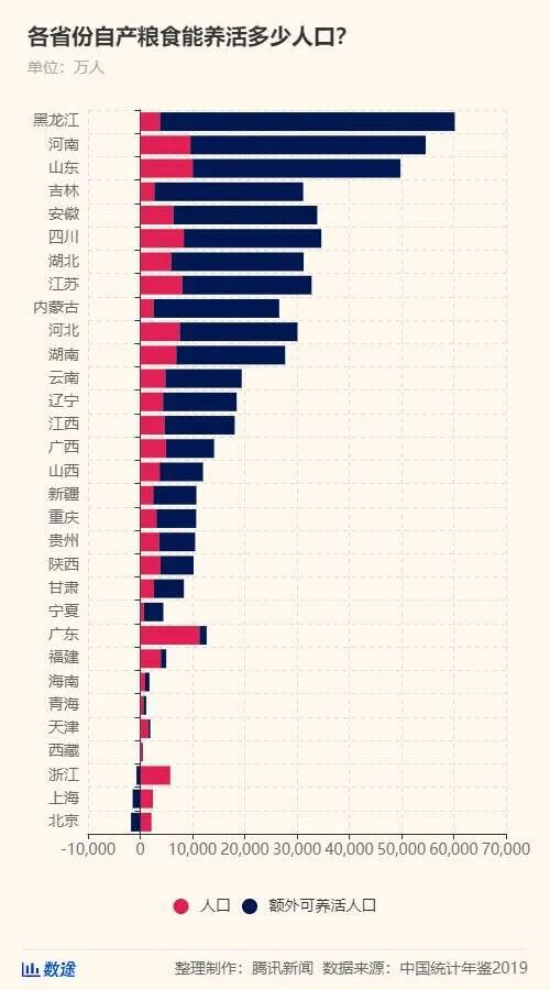 事实上,如果以人均消耗量计算,黑龙江的粮食产量,可以养活16个自己。