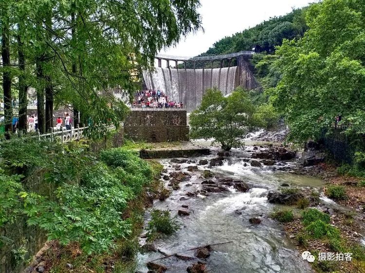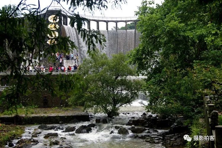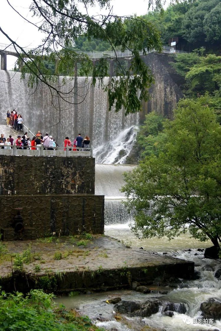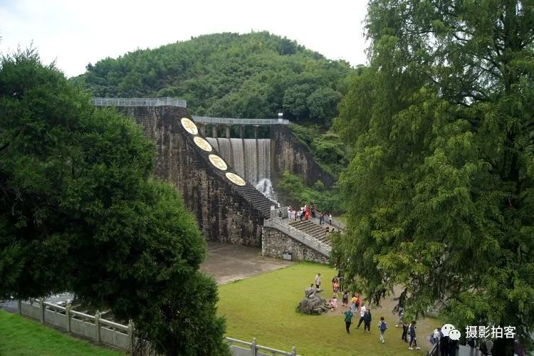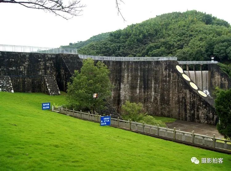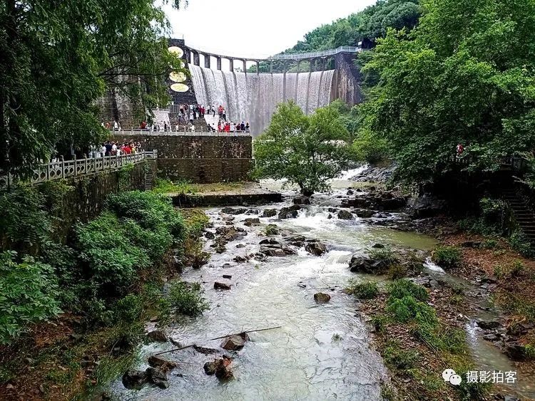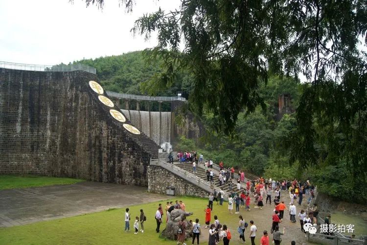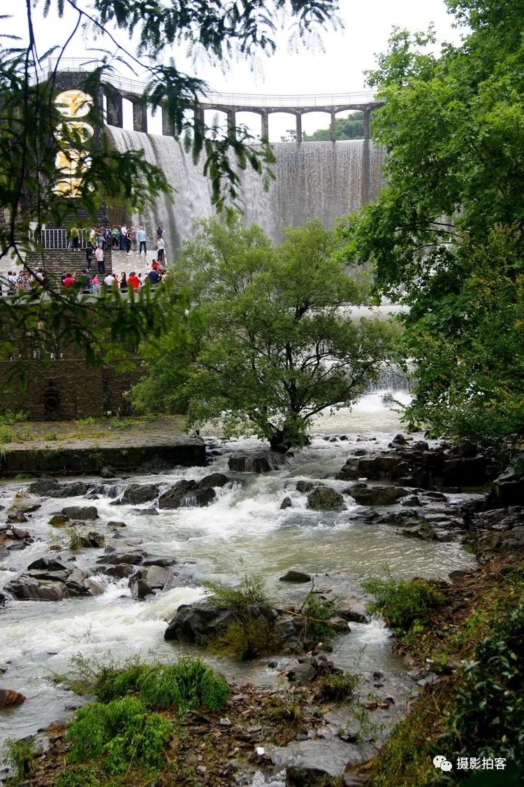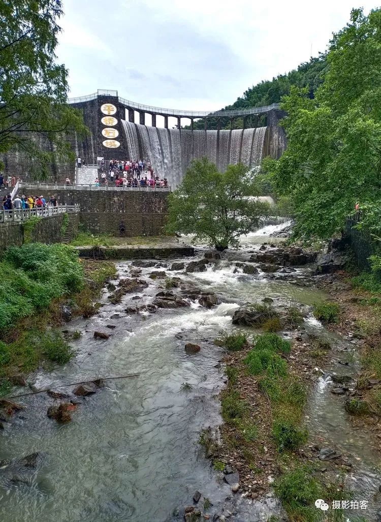每当汛水季节,山水浩荡,库水涌动,从溢流孔中倾泻而下,形成宽约40米,高20余米的飞流瀑布,场景实为壮观。
