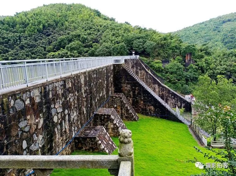 该坝于1974年至1979年,历时5年建成。其宽122米,高24米,由无数块整齐的长方形山石浆砌而成,分东西两个侧拱。以一个中墩,两个边墩连接和支撑,坝底部则深深扎根在山脚裸露的褐色山岩之中,整体造型奇特,建筑工艺高超。