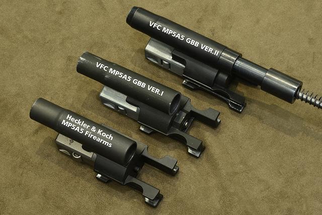 当然,真枪枪机为钢制材质,这点没啥好比,不过MP5枪机滚轮闭锁的巧思却是HK独到之处!