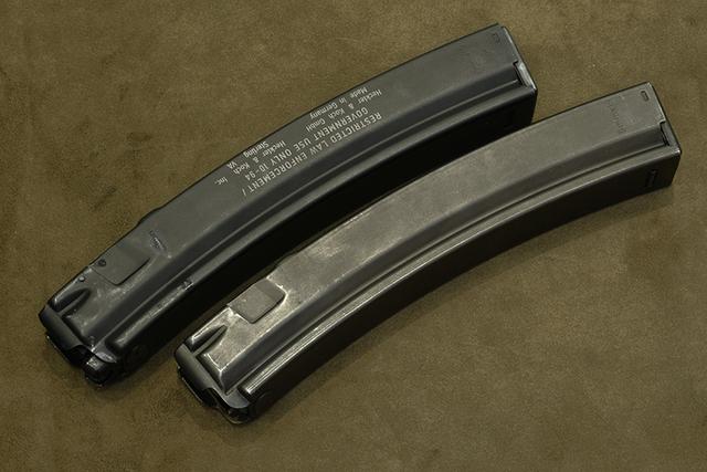 真品弹匣因为长年保养,颜色偏灰,不过外型上如弧度与线条,VFC的弹匣作的已经超仿真了!