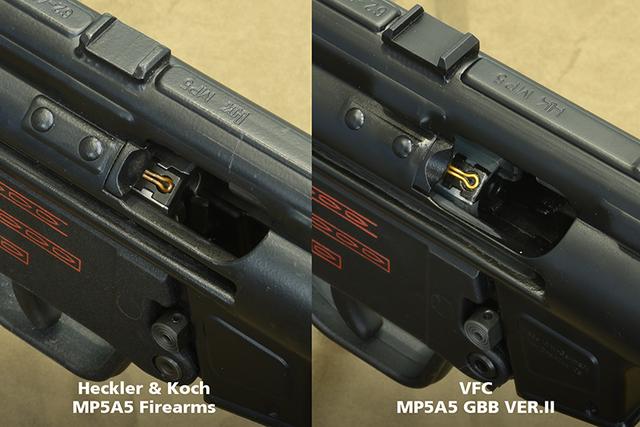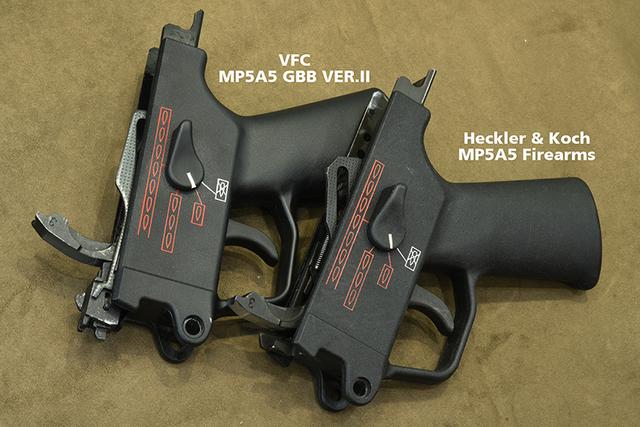 本篇介绍的Heckler & Koch MP5A5为美国出口式样,并非早期西德版本,在机匣刻字跟铭文上每一批MP5都有些许不同,不过在外观细节与色泽上,VFC二代版的GBB已经做足像真度了!