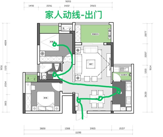 我们这里的家人动线主要是包括起床、洗漱、梳妆、吃早餐到出门这一部分。