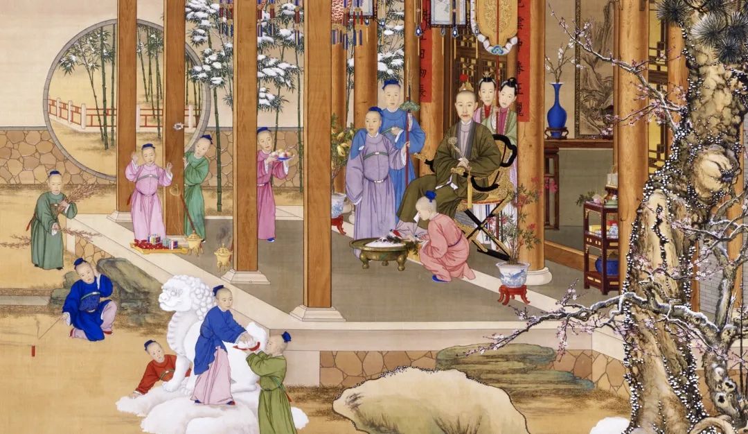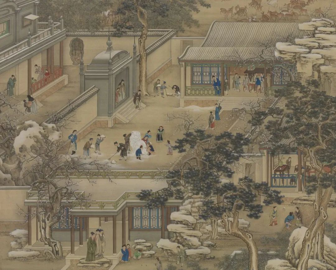 清代 丁观鹏等合绘《弘历雪景行乐图》(局部)
