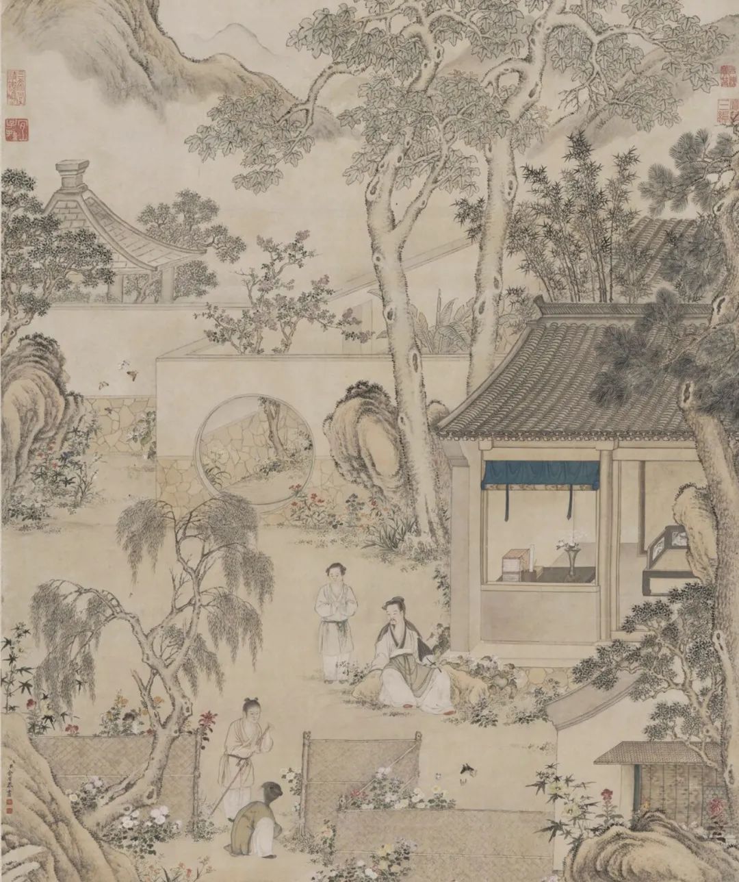 清代 唐岱、丁观鹏等合绘《十二月月令图轴》(局部)