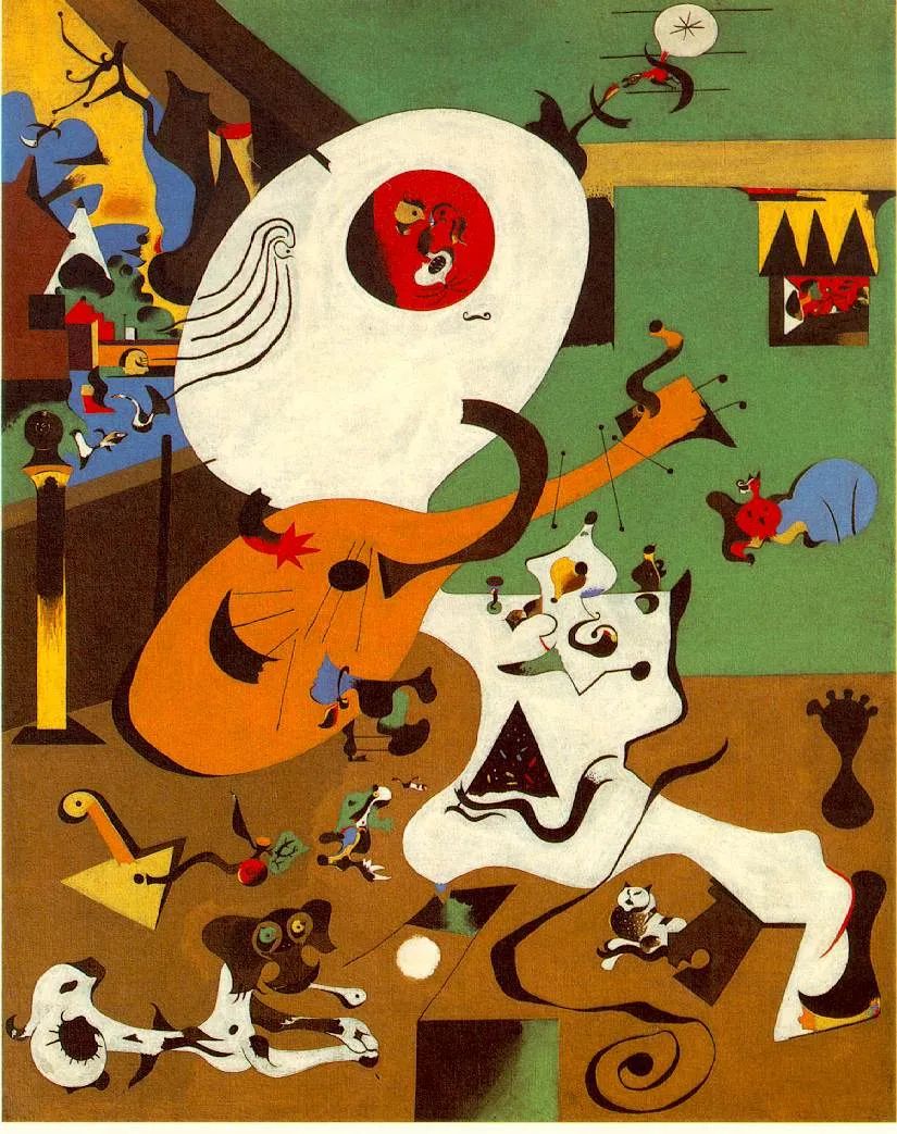米罗艺术的卓越之处,并不在于他的肖像画或绘画结构,而是他的作品有幻想的幽默——这是其中一个要素。另一个卓越之处就是,米罗的空想世界非常生动。他的有机物和野兽,甚至他那无生命的物体,都有一种热情的活力,使我们觉得比我们日常所见更为真实。
