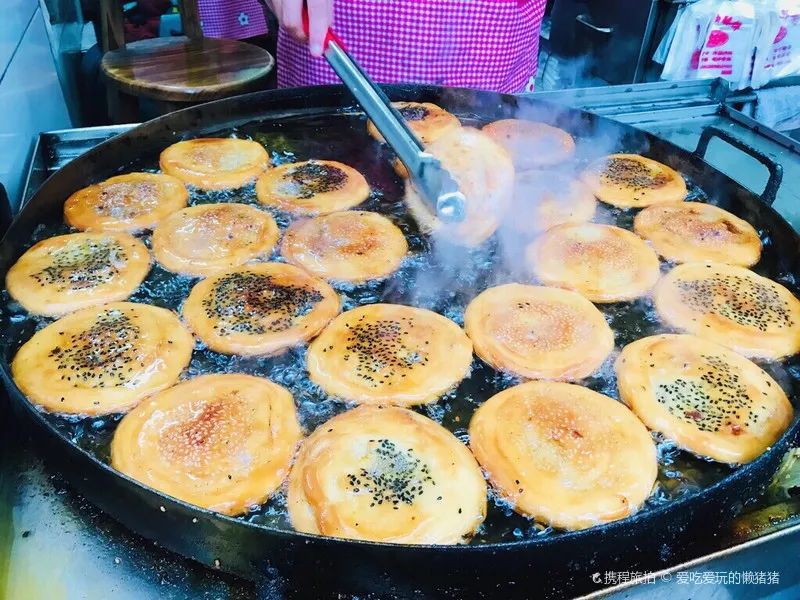先用油把饼煎得金黄,再把锅移走,放在下面的炉子里烘烤,本来略油的饼,这样烤一下,油分就挥发的差不多了。鲜肉馅的不辣,牛肉馅的偏辣,两种都好吃。馅料扎实,分量十足。