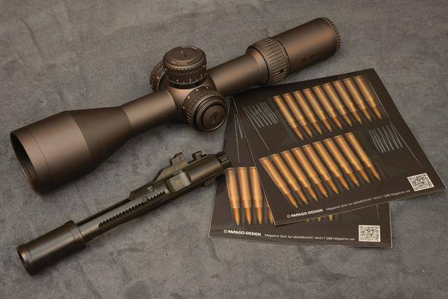 在这边推荐这款VORTEX HD GEN II系列的狙击镜,除了采用34mm筒身,其狼棕色的色泽也跟G28相当搭配,且视觉效果相当出色,十分适合拿来当望远镜用..... .(大误....)。再来就是417专用钢枪机组及PAC 417弹匣贴纸!