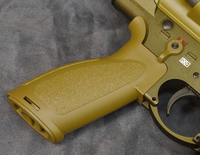枪身烤漆RAL8000色泽很仿真,对于沙色控来说是无法抗拒的魅力!