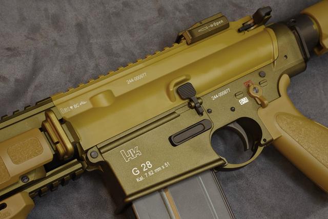 自Heckler & Koch发表416/417枪系以来,相当受到各国军队的欢迎,本篇介绍的VFC/UMAREX G28 GBB正是德国联邦国防军的狙击步枪,因应阿富汗战事所以目前看到的都是RAL8000配色,比较特别的是上下身之所以不同色是因为材料不同,真枪下身为铝合金阳极色,上身为不锈钢制,不锈钢机匣无法阳极只能采用烤漆处理,不过玩具枪只有颜色一样,上下材质仍为铝合金制品!下面就来让大家瞧瞧这把7.62 GBB的大魄力!更多精彩内容私信或公众号viperbbgun