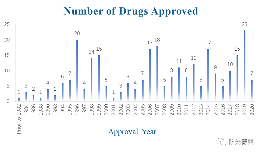 图6 每年FDA批准的经皮给药制剂数据(1982~2020.5)[29]