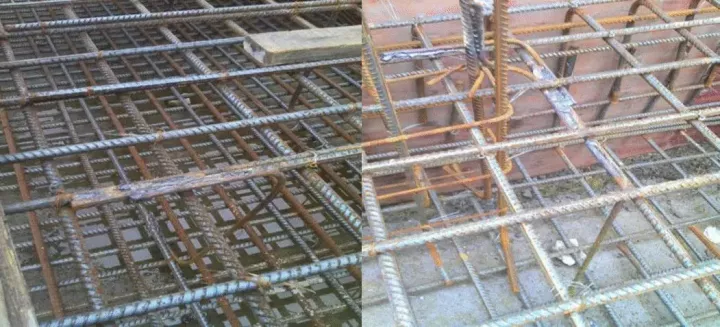 3)圆钢与圆钢搭接为圆钢直径的6倍,双面施焊;