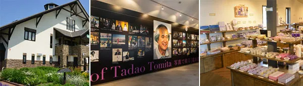 这是农场正门花园前的一个大三角形屋顶的建筑,里面分为上下两层:一层为商店(富田农场的原创产品展示与销售)、咖啡馆和甜品店;二层为富田农场博物馆(介绍农场创建历史及重大事件)、薰衣草蒸馏体验室和祈祷室。
