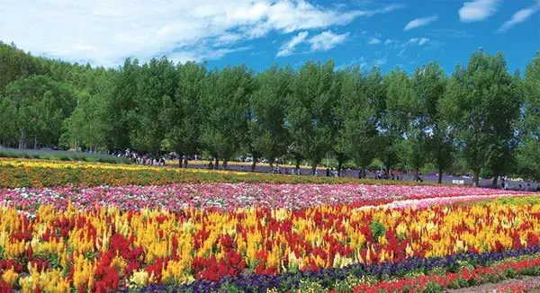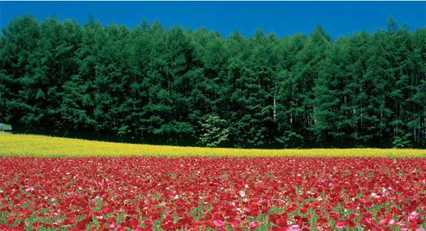当冰雪融化,大地回春之际,农场这片经历寒冬之后的多彩花田,开始复苏,冰岛罂粟、东方罂粟、细香葱、猫薄荷等各色植物逐渐恢复生机。游客们可以看到春意浓浓的多彩花田,也可以看到初春的薰衣草,甚至还可以看到以十胜岳积雪山脉为背景的多彩田园美景。